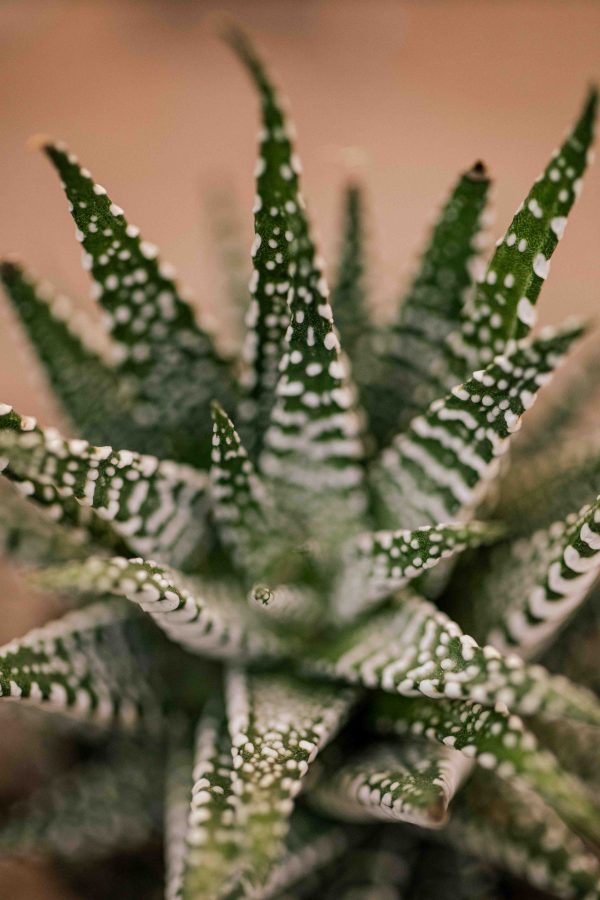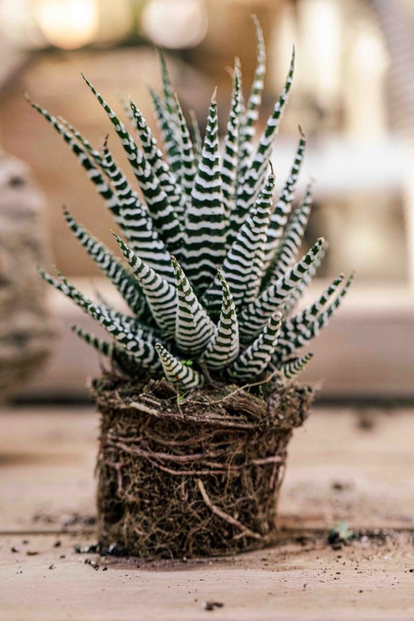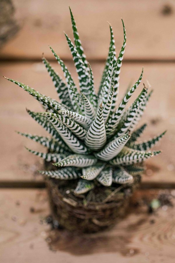 סוקולנט קומפקטי, בעל מראה ייחודי ומרקם שובר שגרה. העלים בצבע ירוק עמוק עם פסים לבנים בהירים, היוצרים מראה זברה עדין ומרשים.